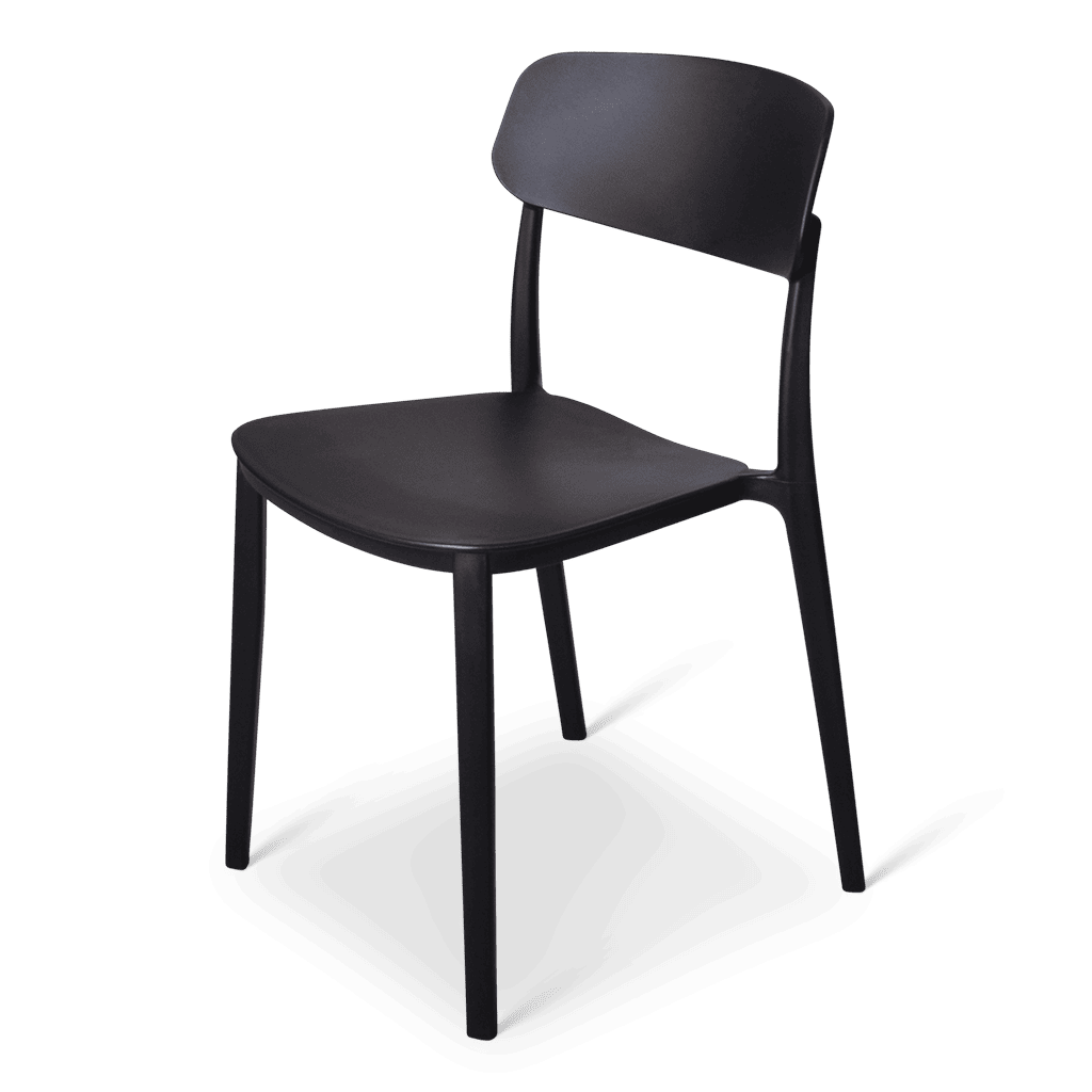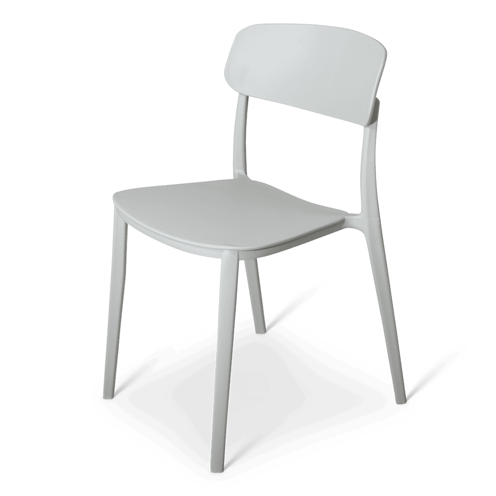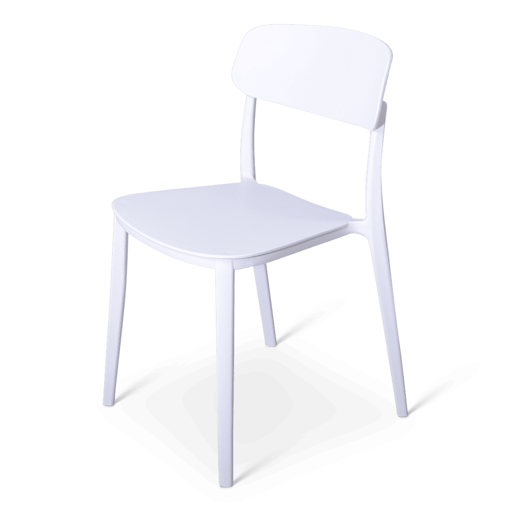 Deze leuke kunststof stoel stapelt gemakkelijk tot vijf stuks. Hij kan zowel binnen als buiten en is er in verschillende kleuren.