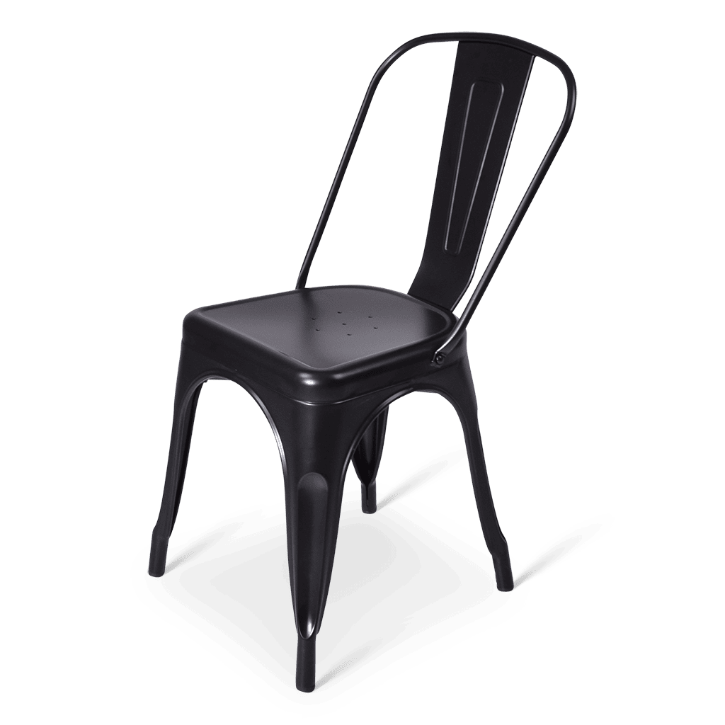 Geef een seintjeEen vintage industriële stapelstoel van metaal voor zowel indoor als outdoor.
